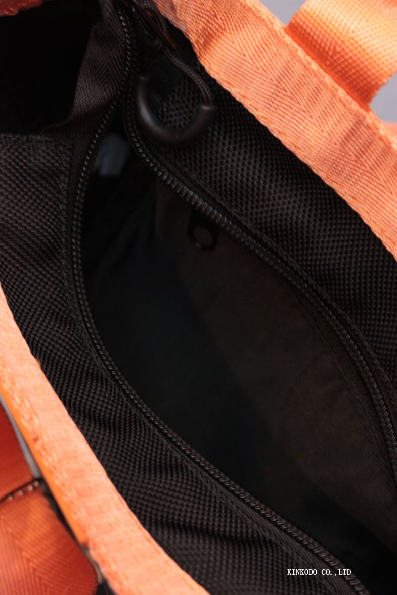 バッグ内部はシンプルな構造で、ジップ付きポケットが一つ。必要最低限をしっかり収納できる、使い勝手のよさもポイント。