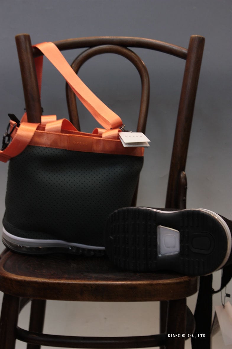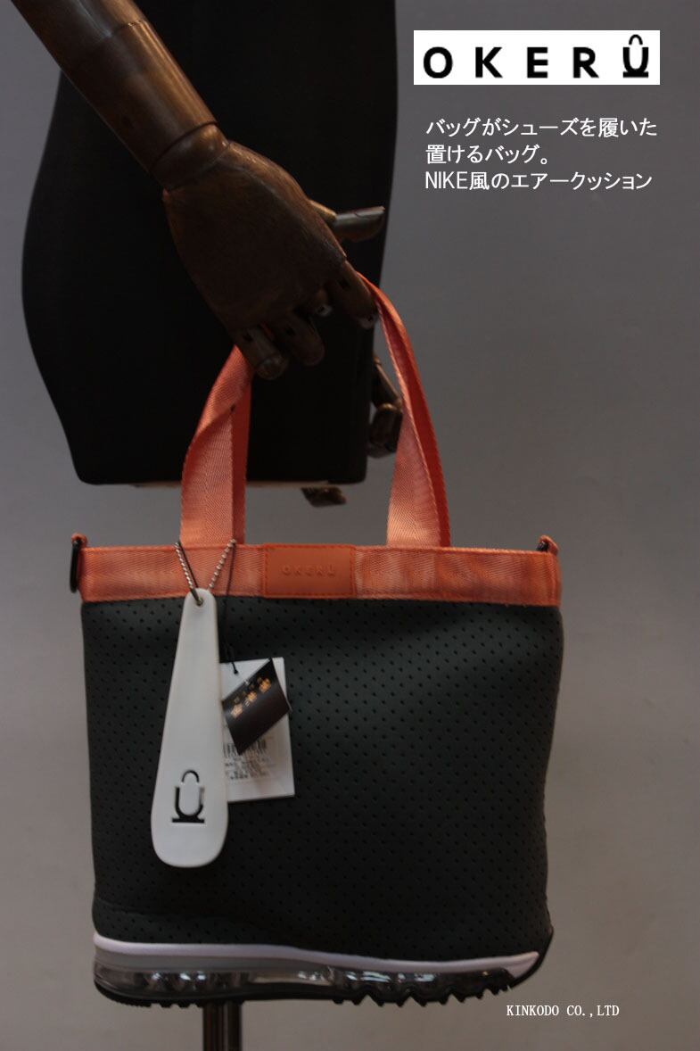 「シューズを履いたバッグ」=OKERU。底面にエアクッションを搭載し、スニーカーのような見た目とクッション性をバッグにプラスしました。