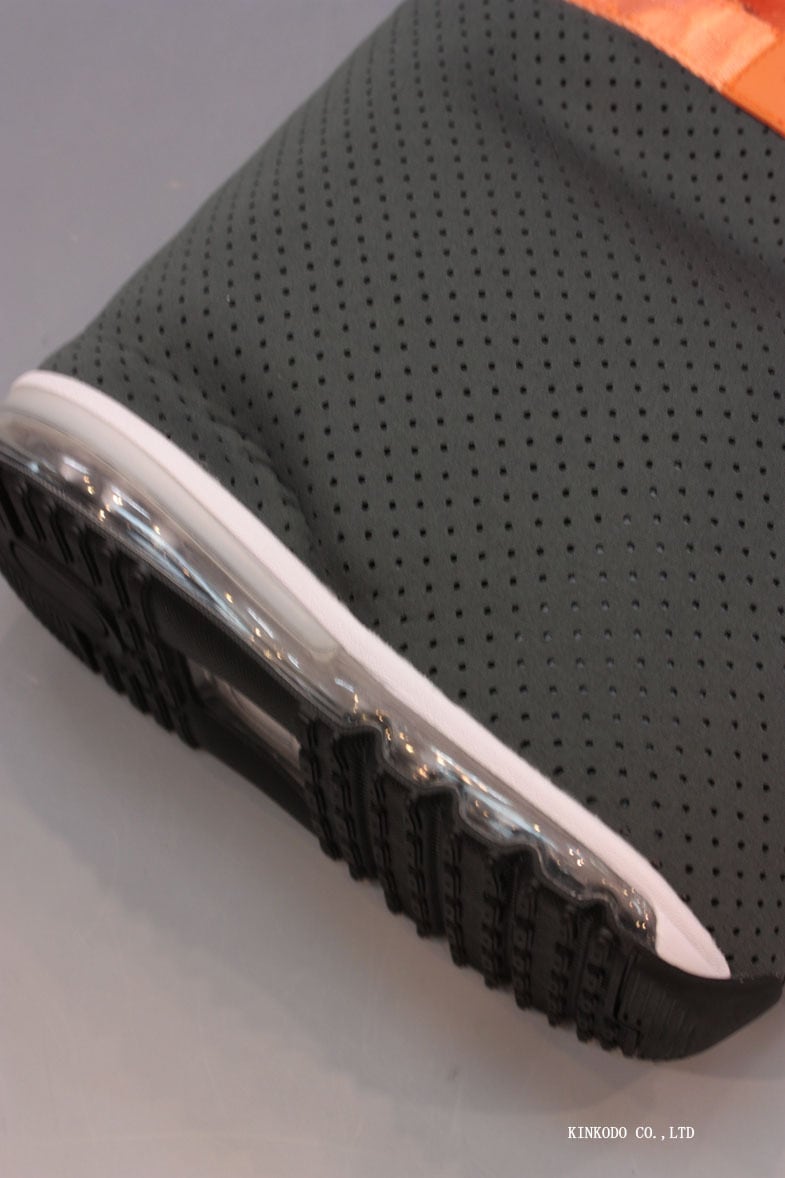 爽やかなオレンジのテープがアクセント。軽くて通気性の良いパンチング素材&エアクッション底で、ラフに置けて使いやすい。
