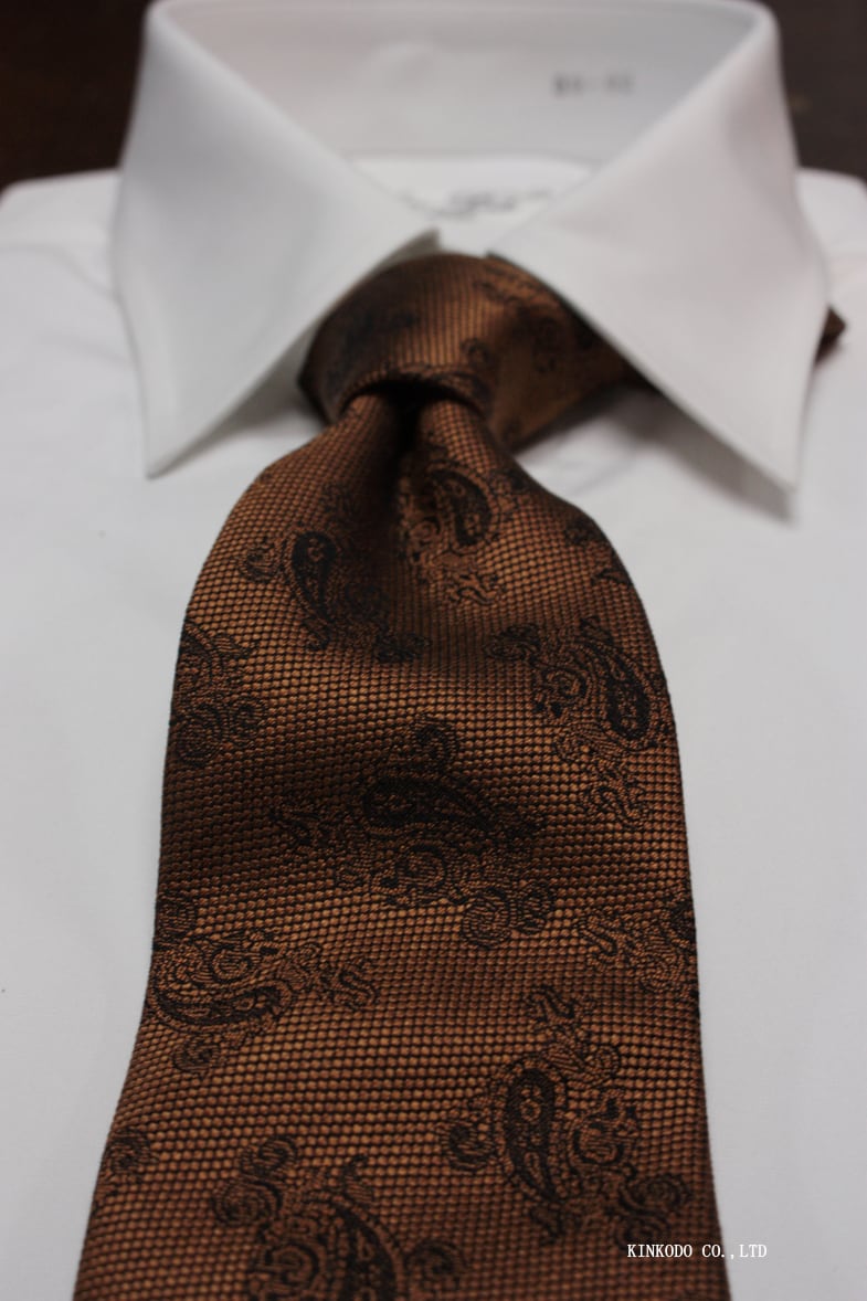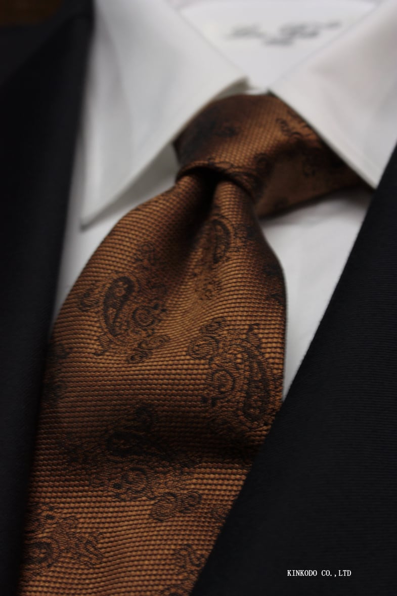 深みのあるゴールドに、控えめなペイズリーが浮かぶ大人の一本。