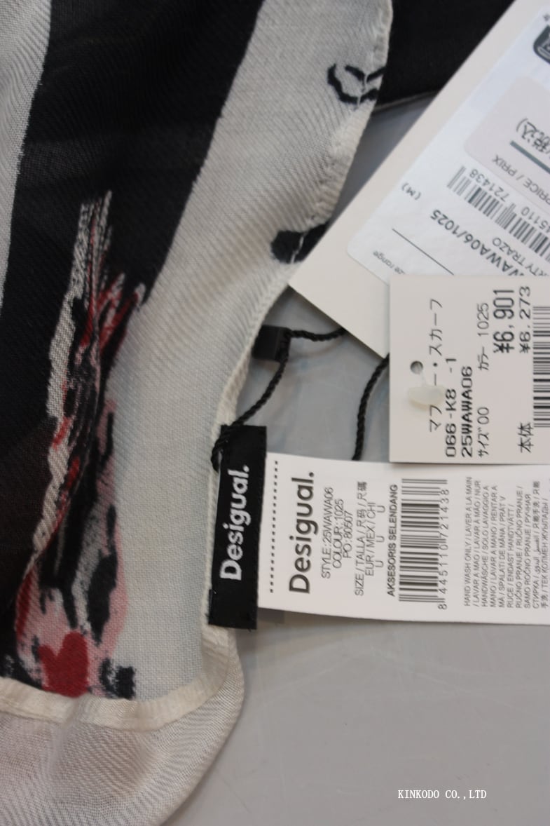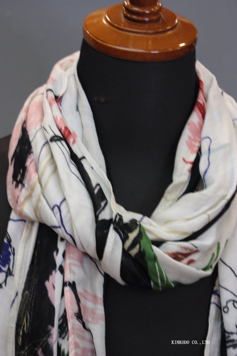 Desigual フラワープリント・ソフトストール(レーヨン100%/80×190cm)