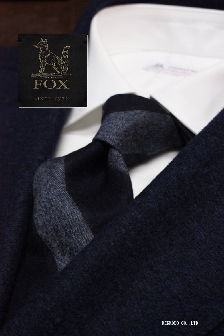 FOX フォックス|ネイビー×グレー レジメンタル ウールタイ イタリー製