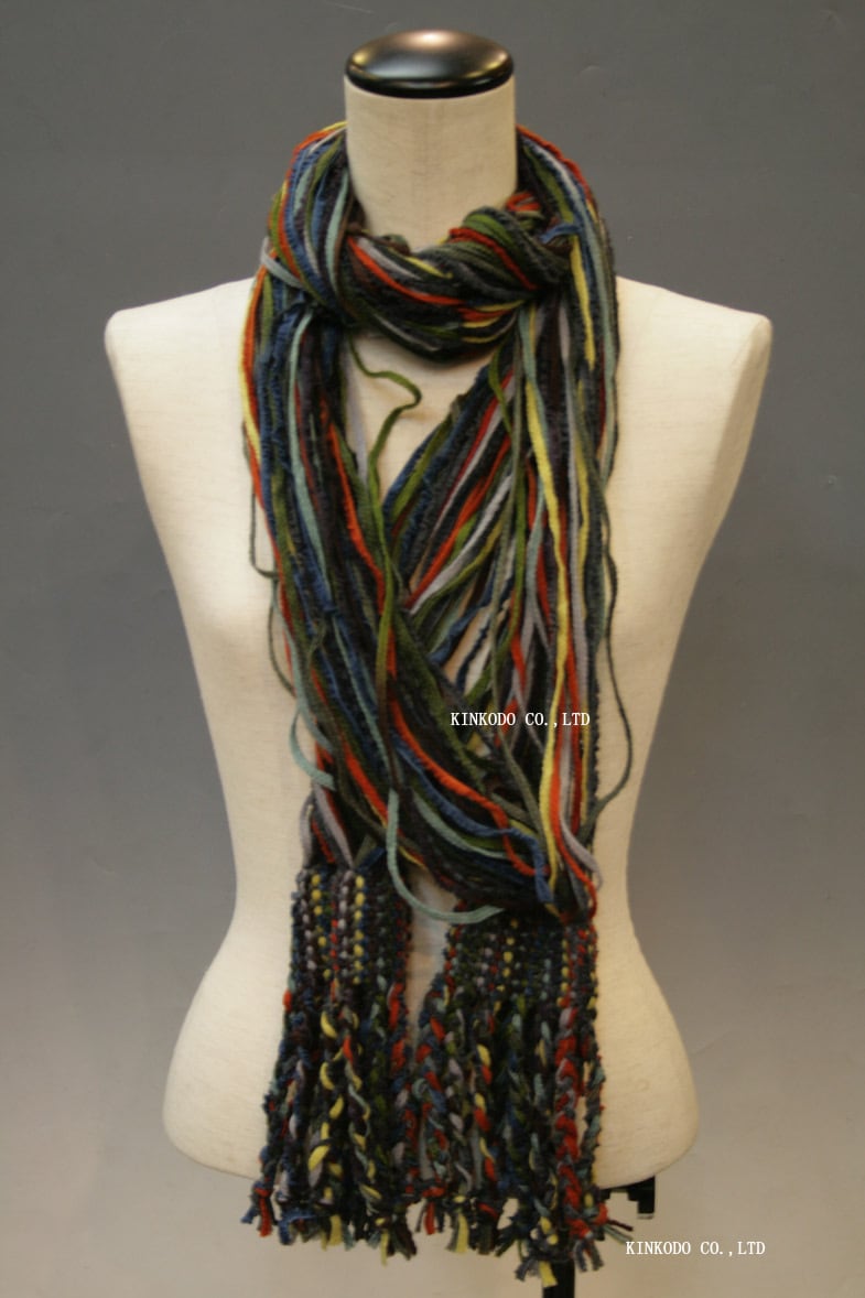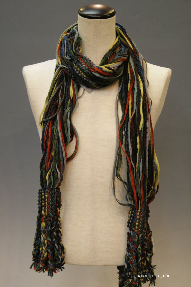 紐襟巻き(歌舞伎・KABUKI)手染めの天然素材の紐を使った手織りの襟巻き