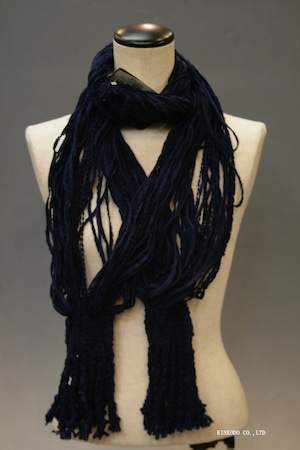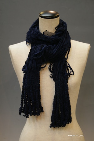 紐襟巻き(紺青・ネイビー)手染めの天然素材の紐を使った手織りの襟巻き
