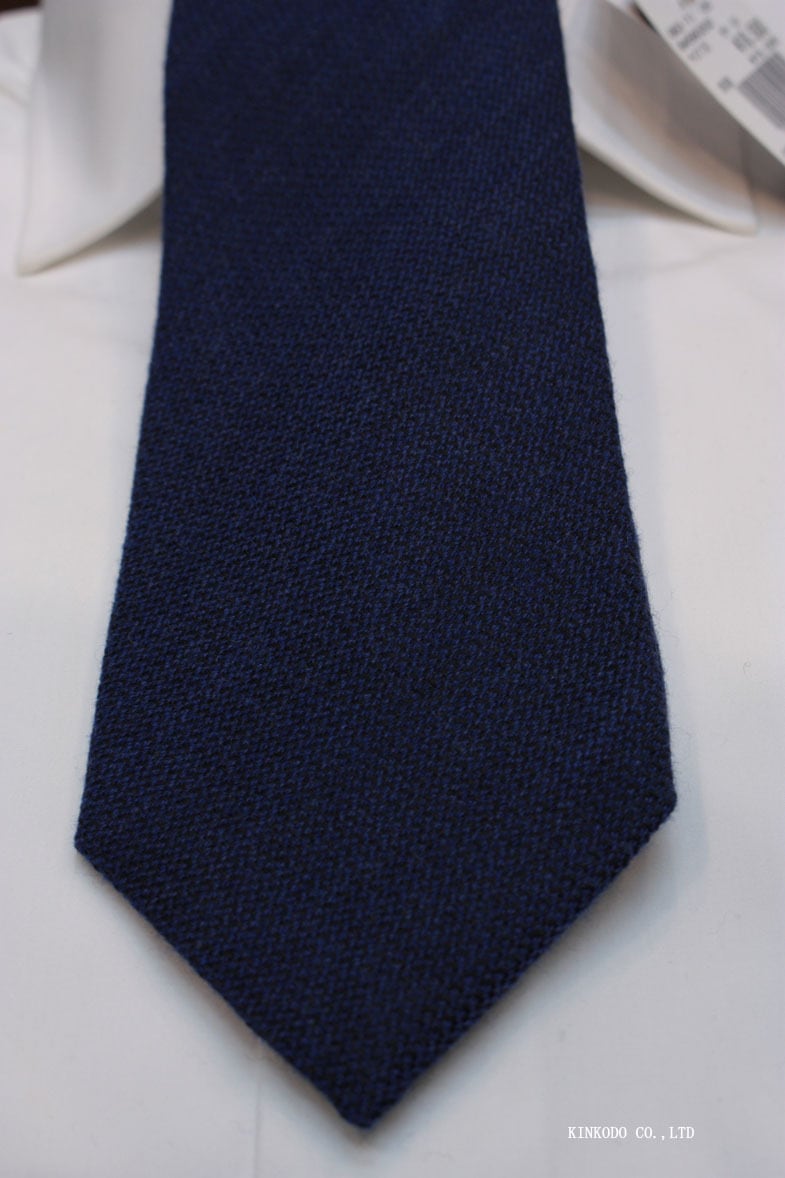 またシルクのソリッドタイとは違い、ウール素材なので、ネイビー単色でも色合いにムラがあるところも特徴であり、ソリッドタイであることでフォーマルシーンでも着用できる反面、すこし遊びの要素も持つことができると思います。