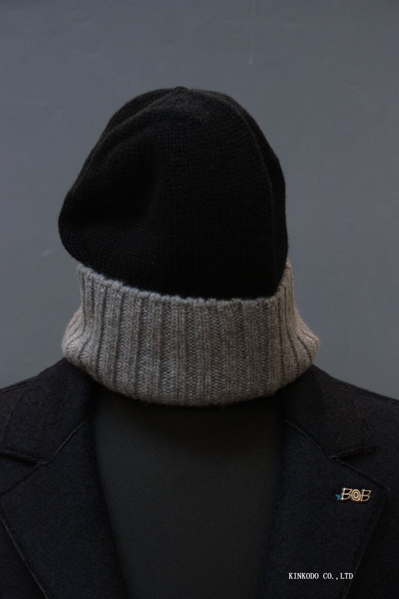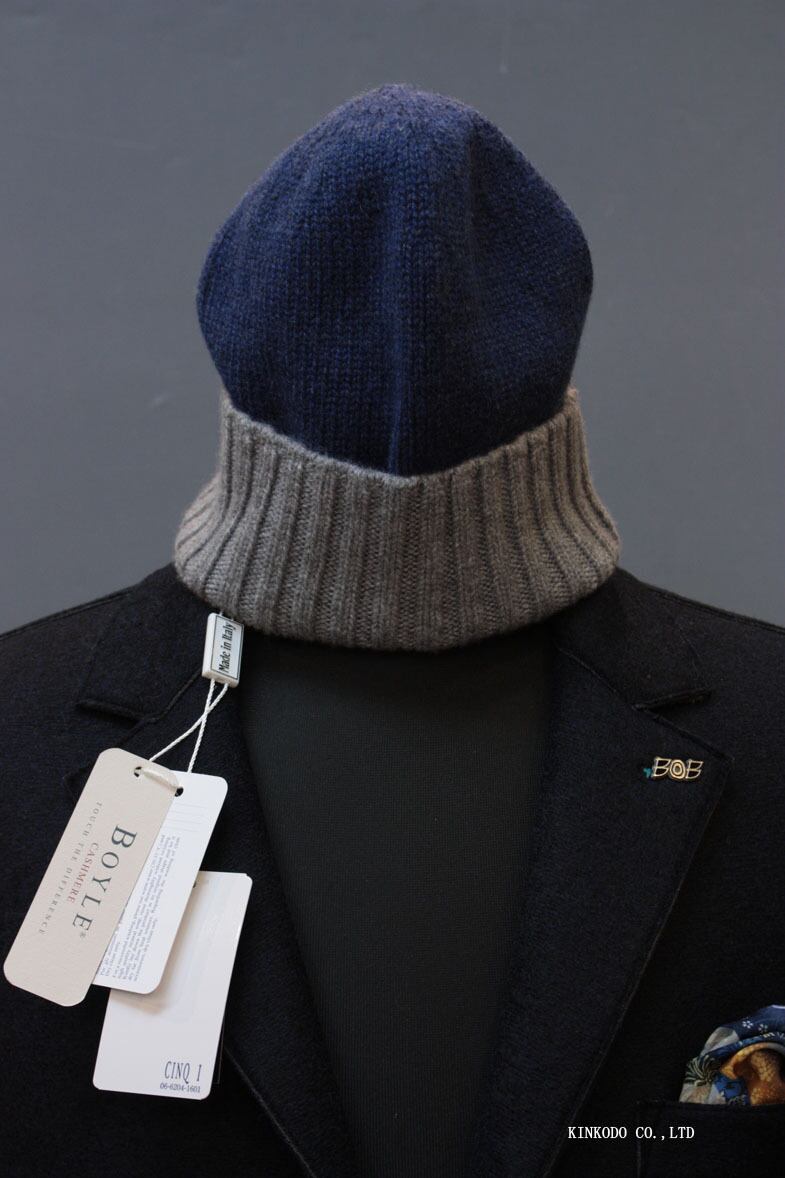 カシミヤニットのニット帽(ブラック×グレー・ブルー×グレー)BOYLEイタリア製